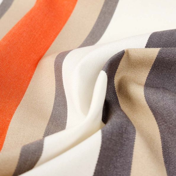 Tissu Toile Dralon rayé orange, beige et gris sur fond Blanc - Par 10 cm