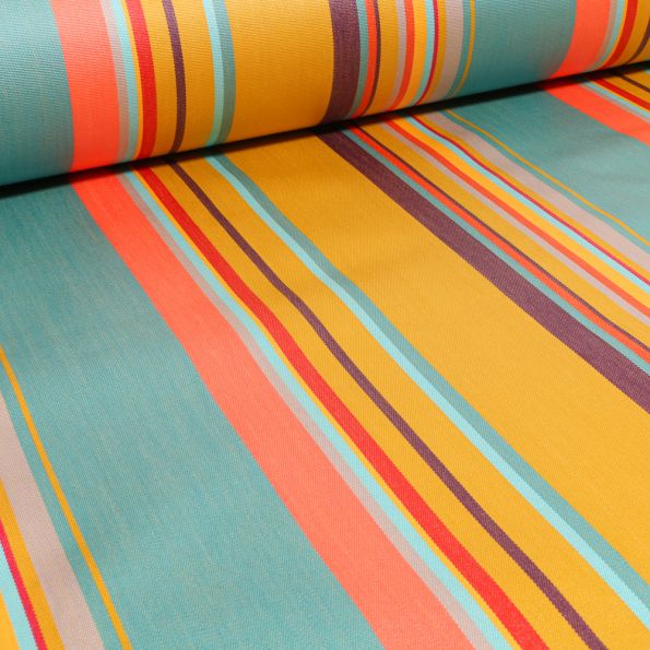 Ce tissu tendance vous permettra de réaliser tous vos projets de décoration extérieure (poufs colorés, coussins de salons de jardins). Son plus ? Il est anti-taches et déperlant