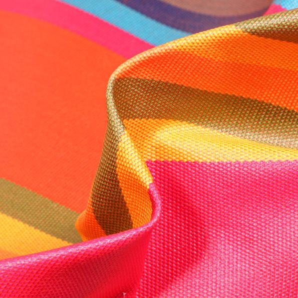 Ce tissu tendance vous permettra de réaliser tous vos projets de décoration extérieure (poufs colorés, coussins de salons de jardins). Son plus ? Il est anti-taches et déperlant