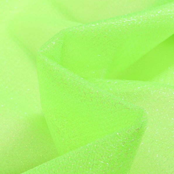 Tissu Tulle souple métallisé Vert fluo - Par 10 cm
