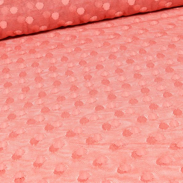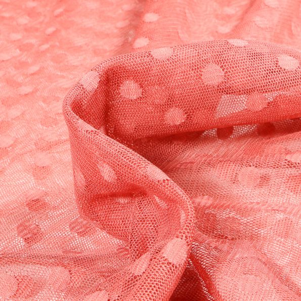 Tissu Tulle souple Pois 1 cm sur fond Corail - Par 10 cm