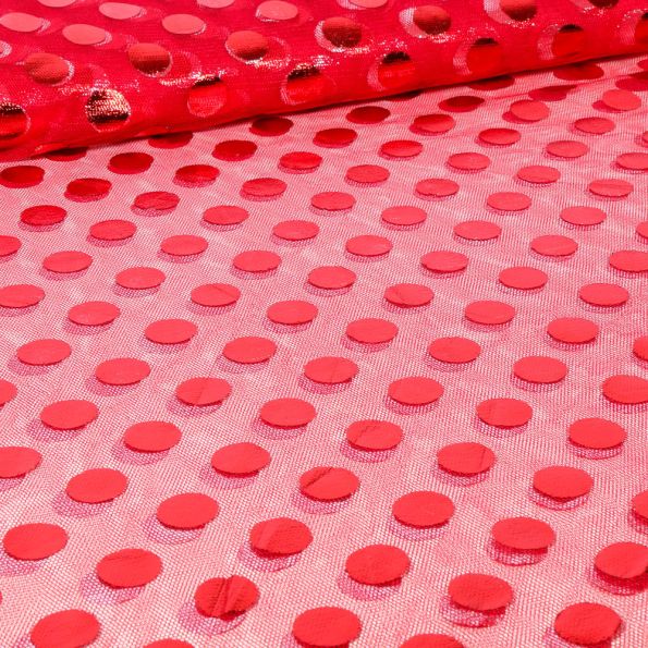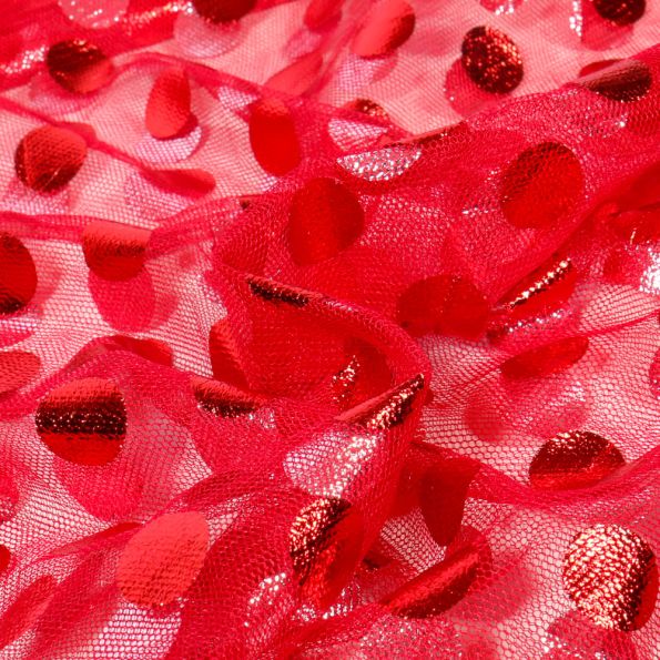 Tissu Tulle souple Pois Big sur fond Rouge - Par 10 cm