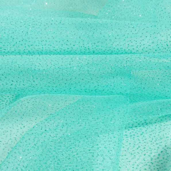 Tissu Tulle Strass Paillettes Bleu lagon - Par 10 cm