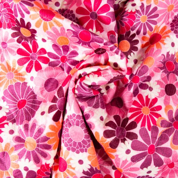 Tissu Velours Matelassé digital Fleurs roses sur fond Rose fuchsia - Par 10 cm