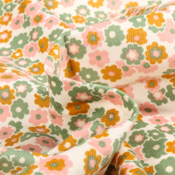 Tissu Velours milleraies Marguerita sur fond Ecru - Par 10 cm
