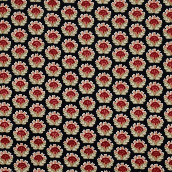 Tissu Velours milleraies Poppy Fleurs mia rouge sur fond Noir - Par 10 cm