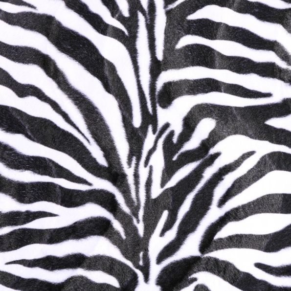 Tissu Velours Peau de bête Zèbre et vagues 3D Noir et Blanc - Par 10 cm
