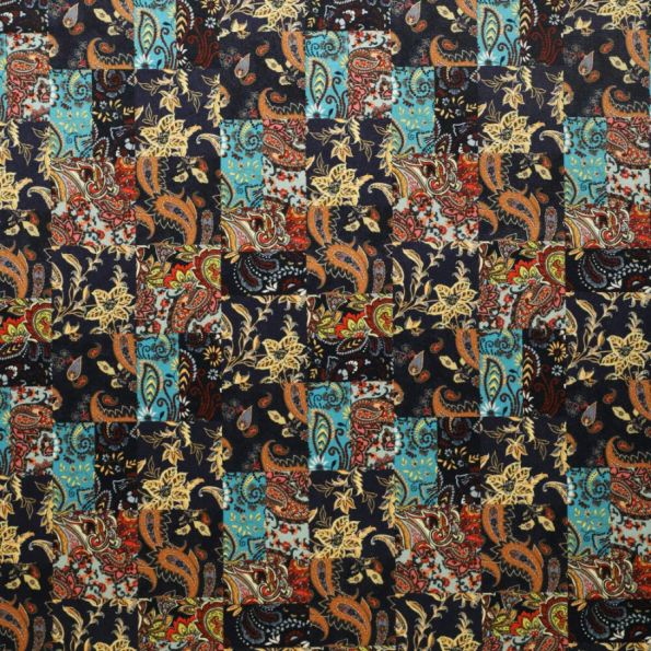 Tissu Velours ras épais PatchPaysley sur fond Bleu turquoise - Par 10 cm