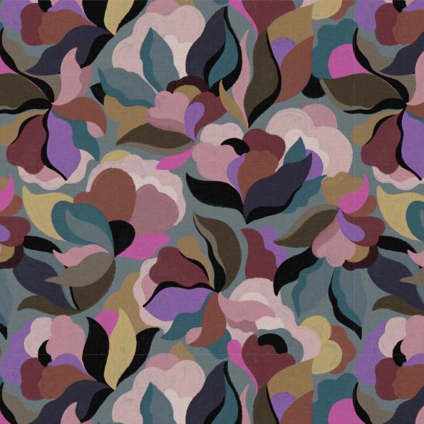 Tissu Viscose Arty Abiva sur fond Bleu ancien - Par 10 cm