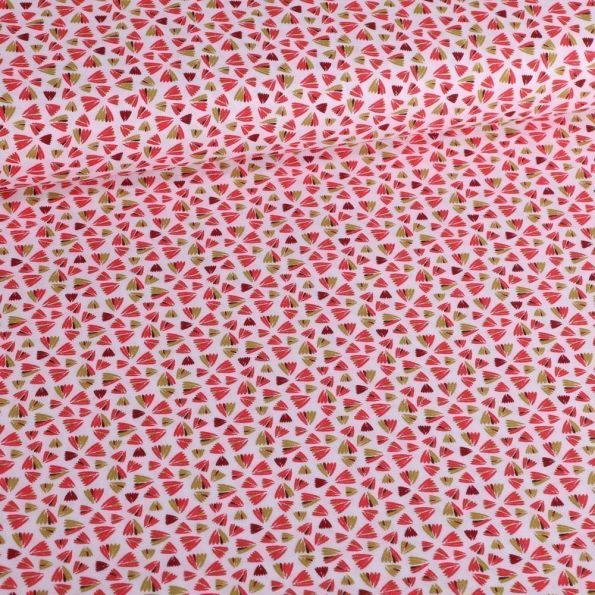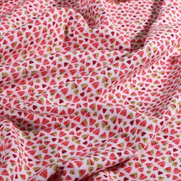 Tissu Viscose Arty Éventail rose et vert sur fond Blanc - Par 10 cm