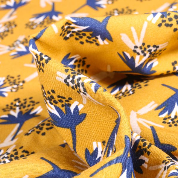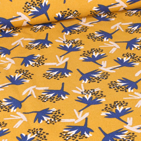 Tissu Viscose Arty Omby sur fond Jaune - Par 10 cm