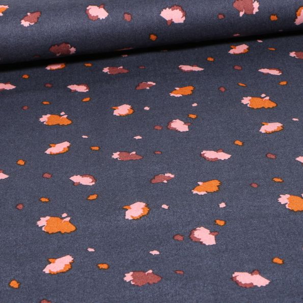 Tissu Viscose Arty Paepae sur fond Bleu jean - Par 10 cm