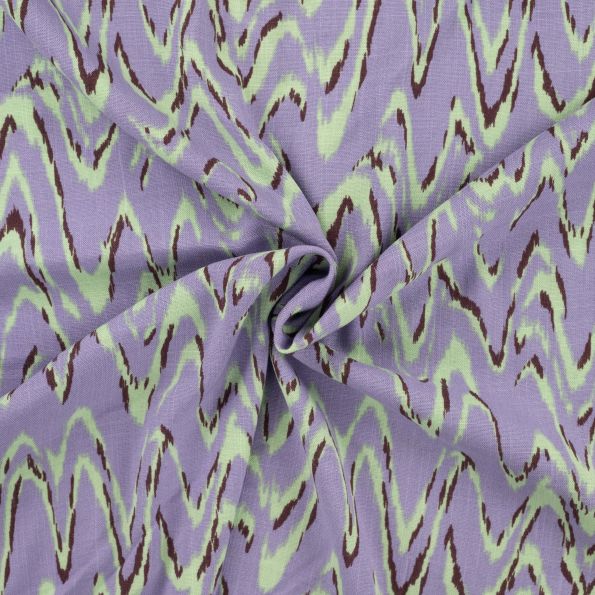 Tissu Viscose aspect Lin Waves vert menthe sur fond Lilas - Par 10 cm