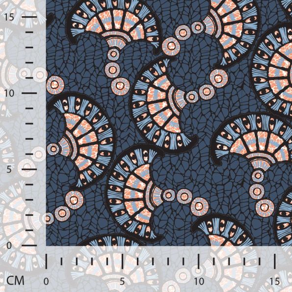 Tissu Viscose Chally Bali sur fond Bleu denim - Par 10 cm