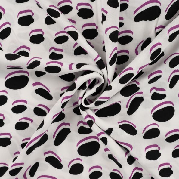 Tissu Viscose Chally Diamonds noir et lilas sur fond Blanc - Par 10 cm