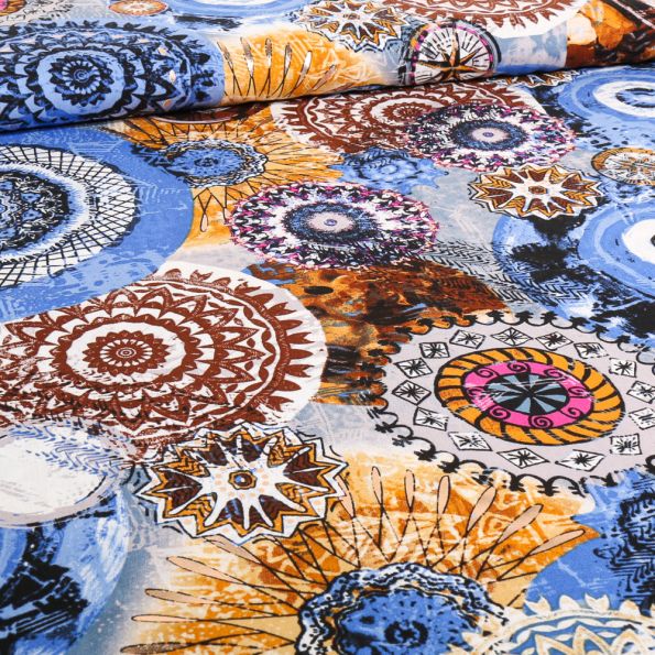 Tissu Viscose Chally Erika denim sur fond Bleu clair - Par 10 cm