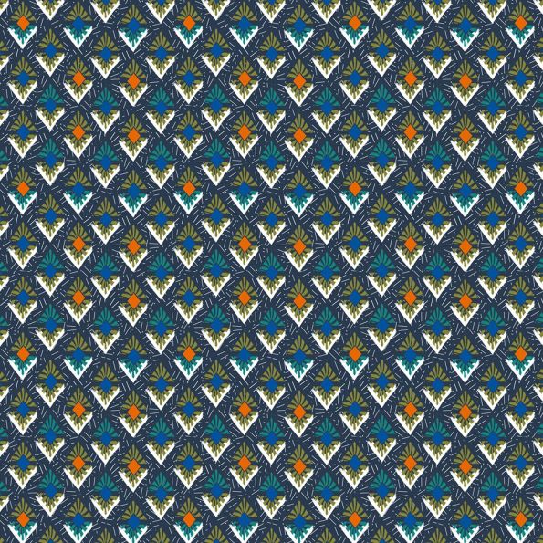 Tissu Viscose Chally Ethnique sur fond Bleu marine - Par 10 cm