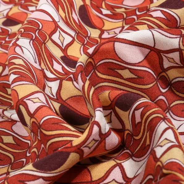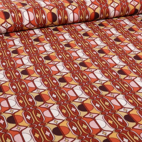 Tissu Viscose Chally Graphy sur fond Rouille - Par 10 cm