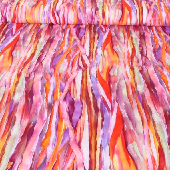 Tissu Viscose Digital imprimé Lignes ondulées sur fond Multicolore - Par 10 cm