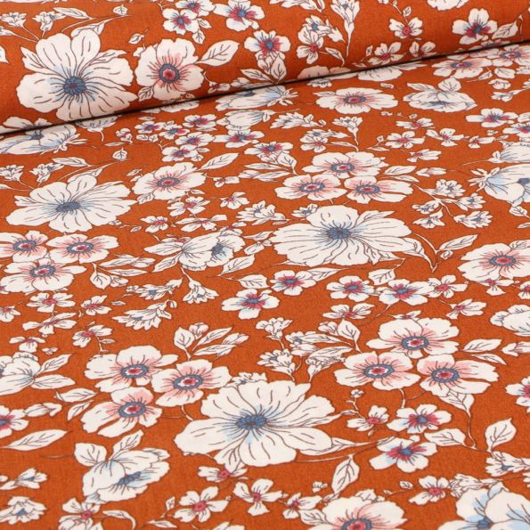 Tissu Viscose Fifi sur fond Rouille - Par 10 cm