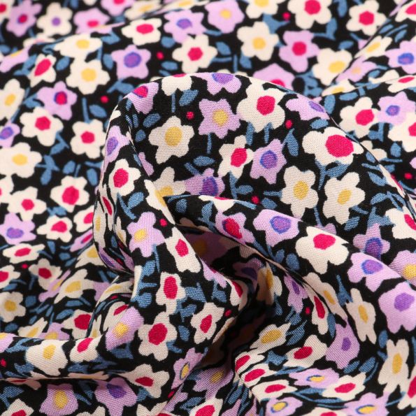 Tissu Viscose Floraly sur fond Noir - Par 10 cm