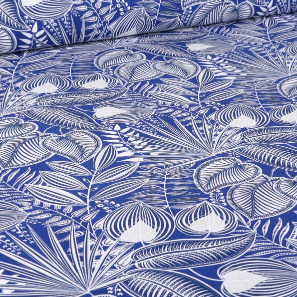 Tissu Viscose Hevea sur fond Bleu - Par 10 cm