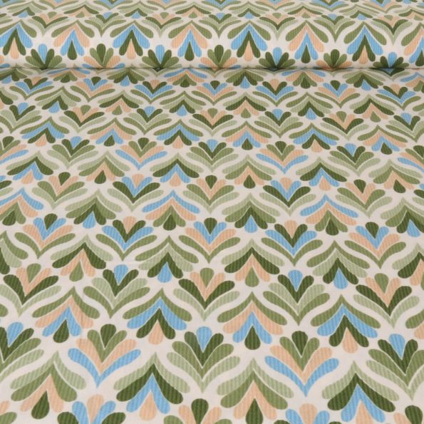 Tissu Viscose imprimé Art déco vert sur fond Ecru - Par 10 cm