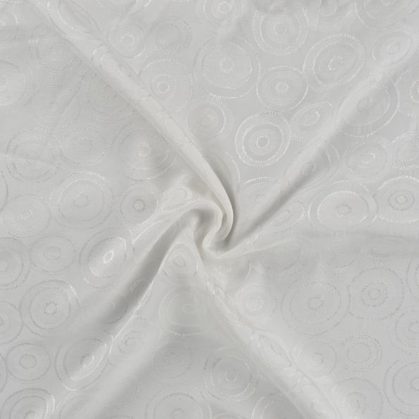 Tissu Viscose Jacquard Cercles en relief sur fond Blanc - Par 10 cm