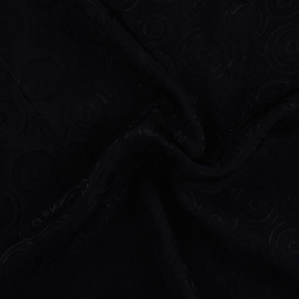 Tissu Viscose Jacquard Cercles en relief sur fond Noir - Par 10 cm