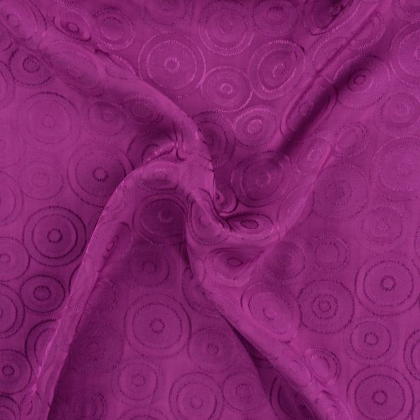 Tissu Viscose Jacquard Cercles en relief sur fond Violine - Par 10 cm