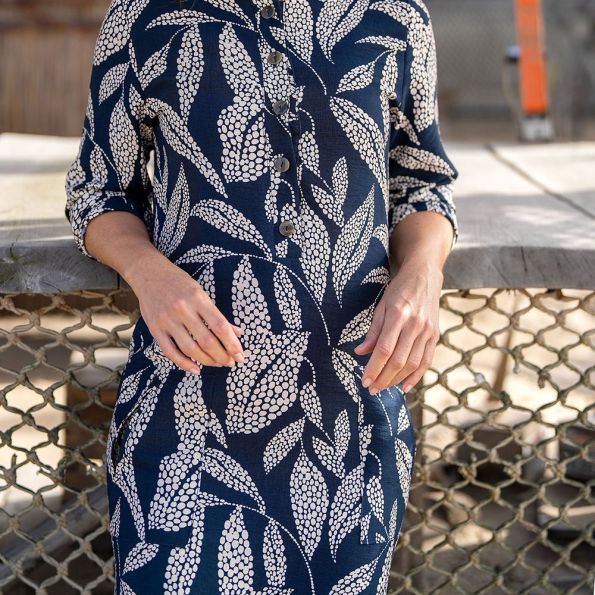 Tissu Viscose Ottoman Feuillage Bleu Marine - Par 10 cm