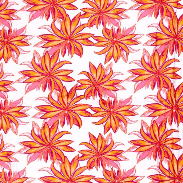 Tissu Viscose Ottoman Feuillage orangé sur fond Blanc - Par 10 cm