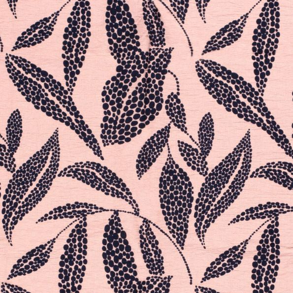 Tissu Viscose Ottoman Feuillage sur fond Rose - Par 10 cm