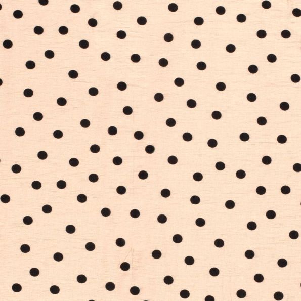 Tissu Viscose Ottoman Pois noirs sur fond Beige - Par 10 cm
