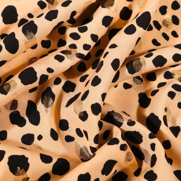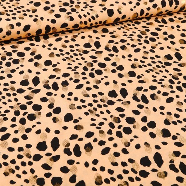 Tissu Viscose Pois déstructurés noirs et dorés sur fond Beige - Par 10 cm