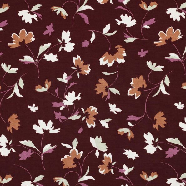 Tissu Viscose stretch Bia sur fond Prune - Par 10 cm
