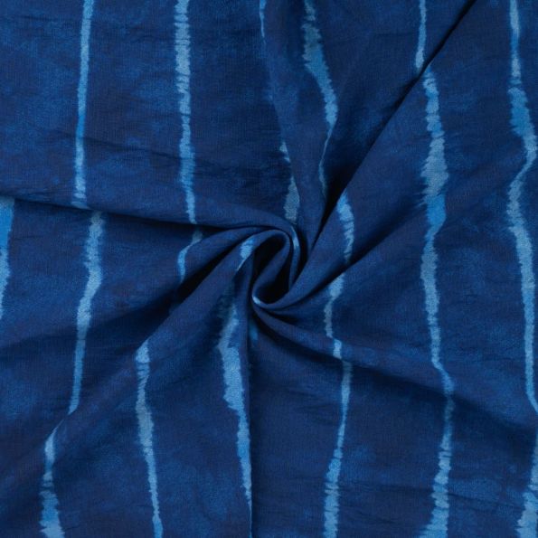 Tissu Viscose texturé Rayé sur fond Bleu denim - Par 10 cm