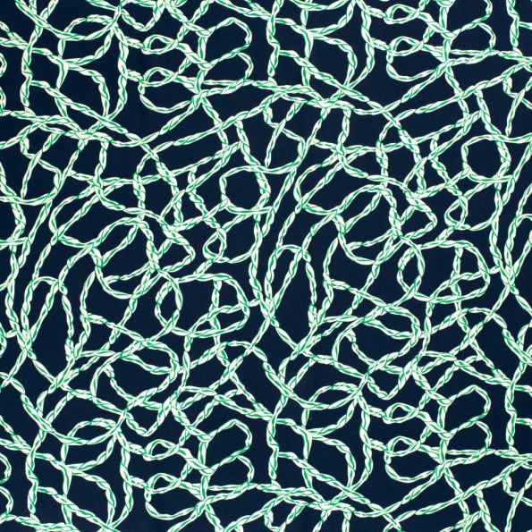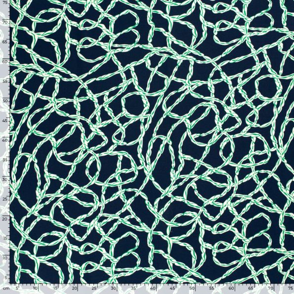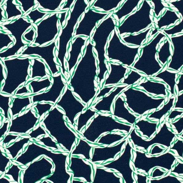 Tissu Viscose Twill Abstrait Vert sur fond Bleu marine - Par 10 cm