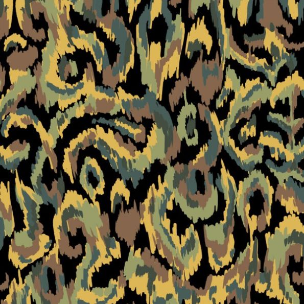Tissu Viscose Twill Lia vert sur fond Noir - Par 10 cm