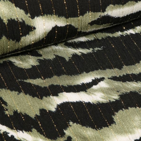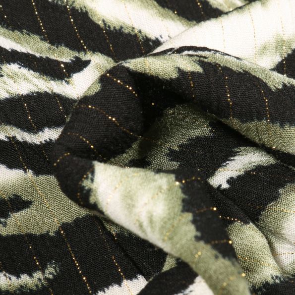 Tissu Viscose Zébré rayures lurex sur fond Vert - Par 10 cm