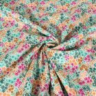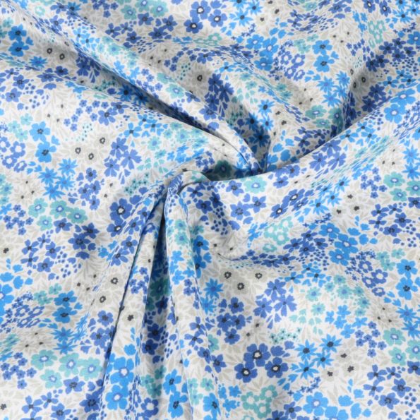 Tissu Voile de Coton digital Petites fleurs bleues sur fond Blanc - Par 10 cm