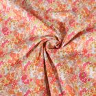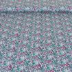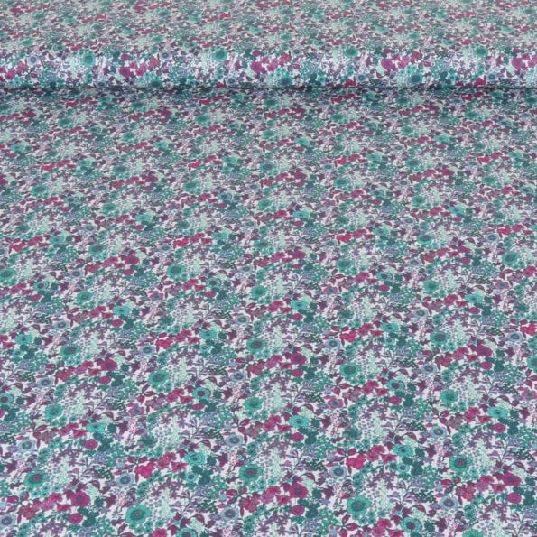 Tissu Voile de Coton digital Petites fleurs Vert émeraude et fuchsia sur fond Blanc - Par 10 cm