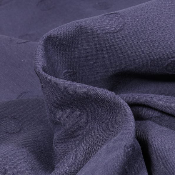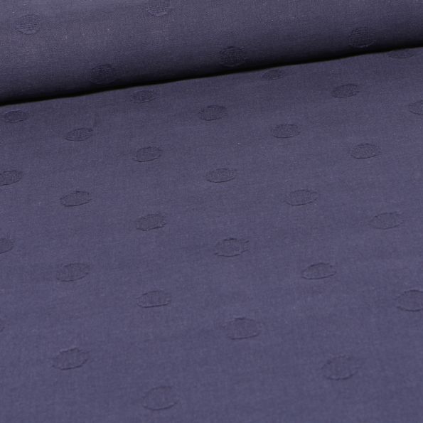 Tissu Voile de Coton Pois texturé sur fond Bleu marine - Par 10 cm