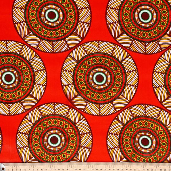 Tissu Wax africain n° 459 Rouge - Par 10 cm