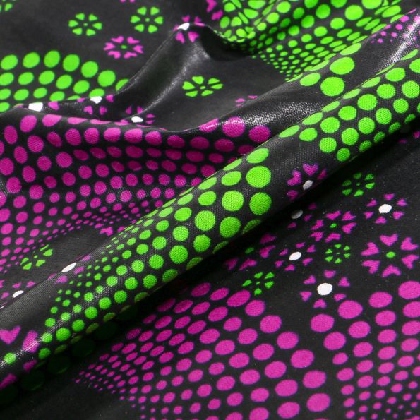 Tissu Wax africain n° 717 sur fond Noir - Par 10 cm