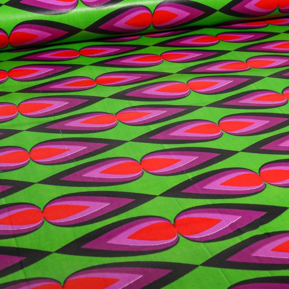 Tissu Wax africain n° 719 sur fond Vert - Par 10 cm