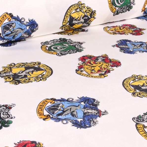 Tissus Velours d'ameublement sous licence Ecusson maison sur fond Blanc cassé - Par 10 cm