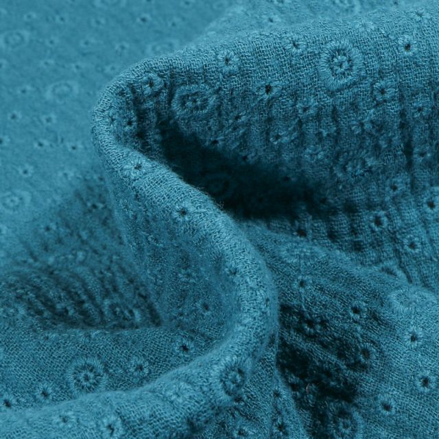 Le tissu double gaze est constitué de deux épaisseurs de gaze de coton cousues ensemble par des petits points très discrets, quasiment indétectables. C’est un tissu assez léger et souple grâce à une trame plutôt lâche. Contrairement à ce qu’on pourrait croire, le tissu double gaze n’est pas transparent contrairement à la simple gaze de coton, puisque doublé. C’est un tissu à la mode en ce moment, idéal en été par sa légèreté. Le tissu double gaze est également très absorbant, ce qui le rend idéal dans la confection de linge pour bébé.