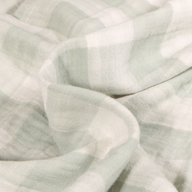 Tout d’abord, il faut savoir qu'il est conseillé de prélaver votre tissu avant de le coudre. Il est ensuite tout à fait possible de laver le tissu double gaze en machine, à basse température et de préférence sur un cycle spécial linge délicat. Pour les plus petites pièces, il peut être judicieux de les placer dans un filet à sous-vêtements pour éviter tout risque de détérioration. Il est déconseillé d’essorer du tissu double gaze en machine et conseillé de fuir le sèche-linge. Pour le séchage, l’idéal est de le laisser sécher à l’air libre, de préférence à plat pour éviter toute déformation, et loin des rayons du soleil pour éviter qu’il ne décolore.