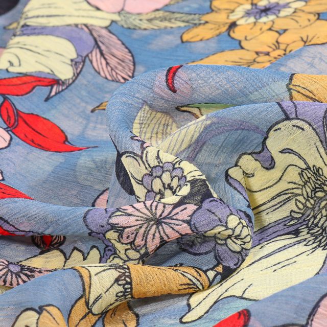 La mousseline est un tissu délicat et vaporeux, qui vous permettra de réaliser des pièces raffinées et aériennes. Cette matière se caractérise par sa souplesse et sa douceur. Elle est d’une extrême finesse et semble prendre vie à chaque mouvement. Le tissu mousseline est légèrement transparent, lorsqu’il est utilisé dans l’habillement il nécessite une doublure.